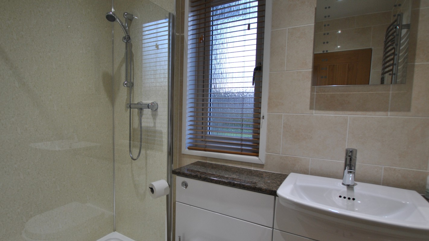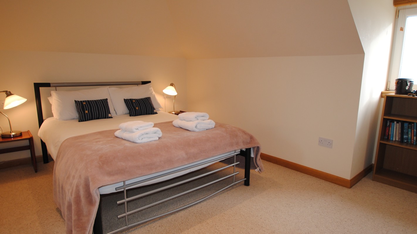 On the first floor there is the main bedroom, an airy double room with large en-suite shower room. Use the binoculars to make the most of the elevated position, you may well spot a pod of passing dolphins!